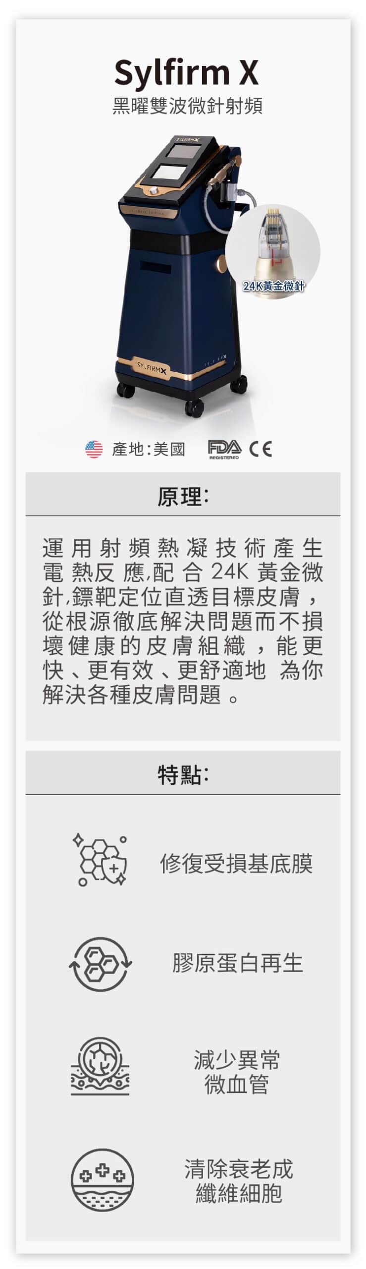 1-第五代Thermage FLX 900發(由醫生主理)2-Sylfirm X黑曜雙波黃金微針 1次
